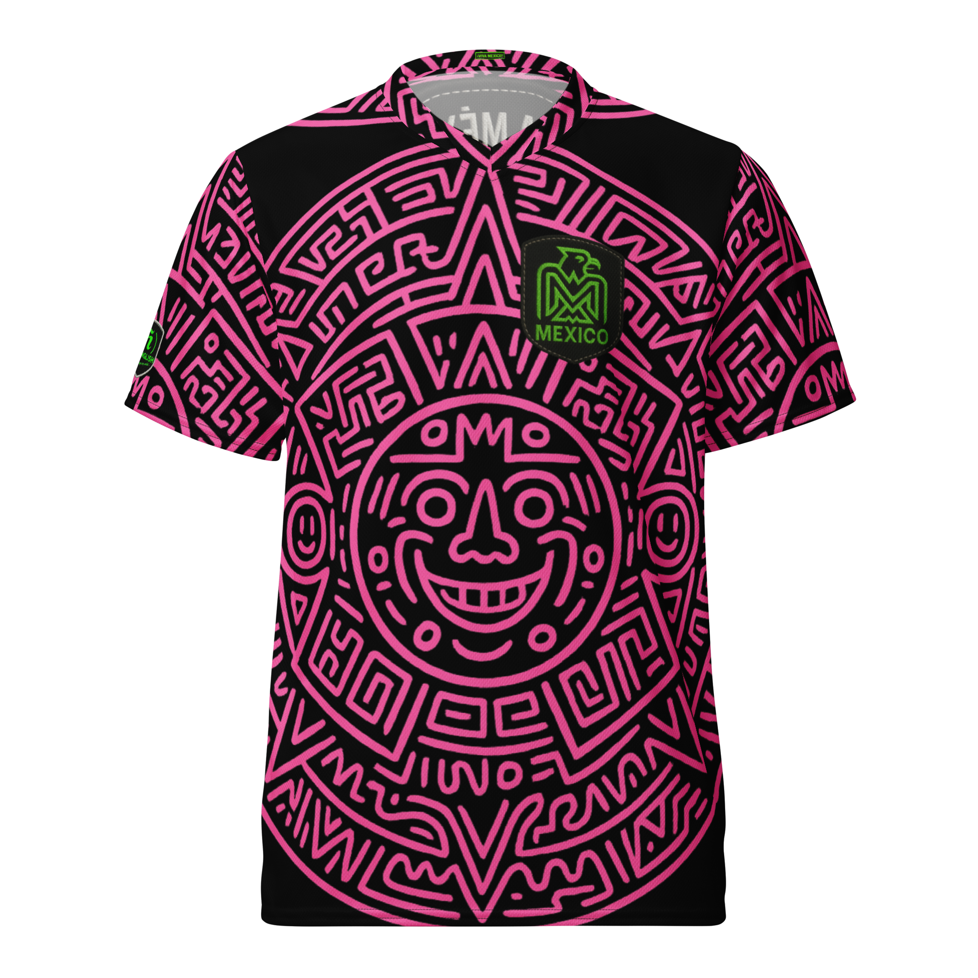 Viva Mexico Cabrones Calendar Neon Pink - Recycled unisex sports jersey